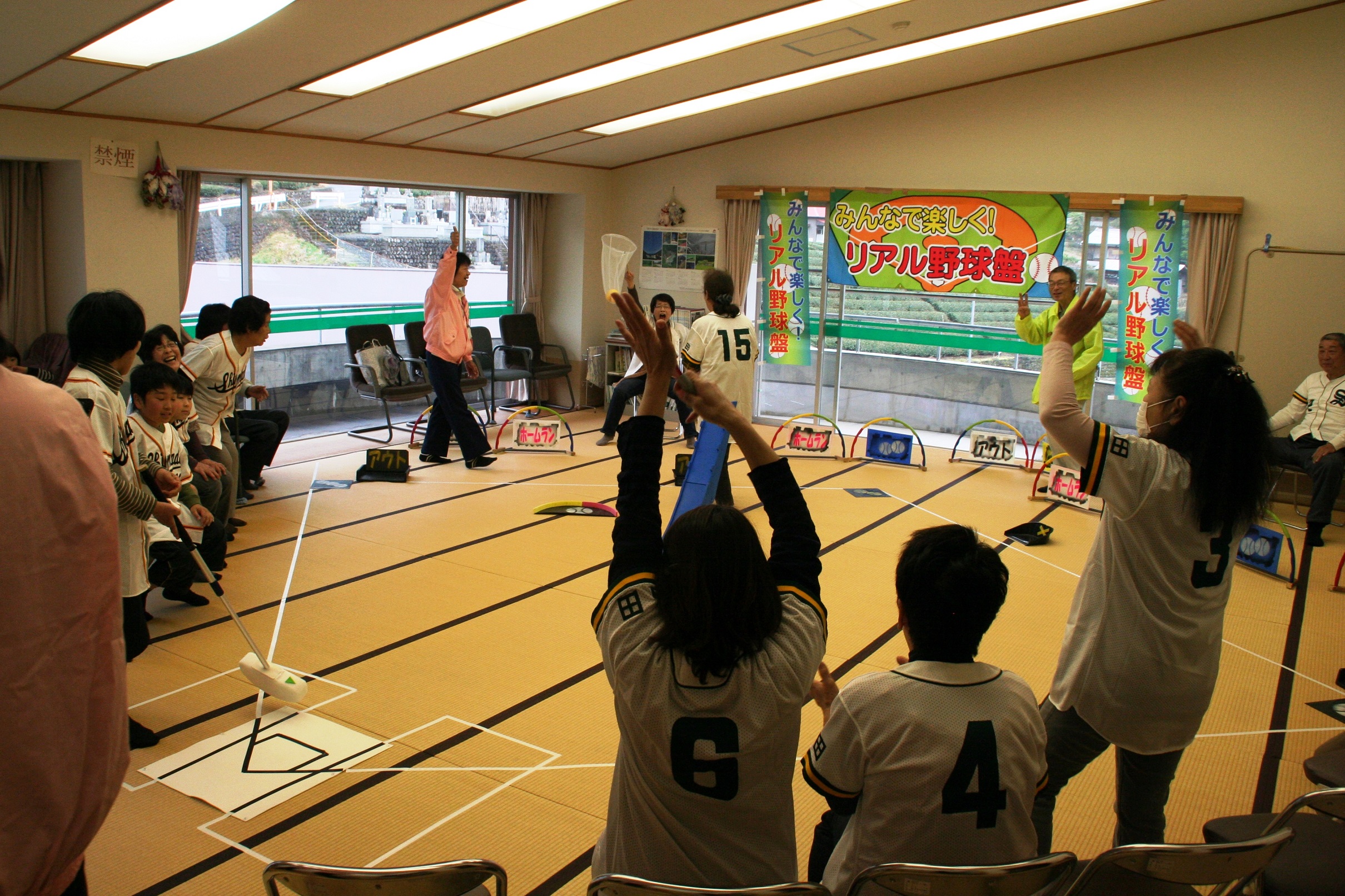 メインイベントとして、子どもから高齢の方まで、だれでも楽しめるニュースポーツ”リアル野球盤”を行いました。